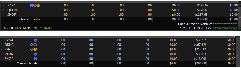 這個星期業績期日日都有股票高低開十幾%,而我在星期一開始Focus炒的股票分別是AMD, SHOP, DKNG 等等這些股票都是大平均成交量,滑價。