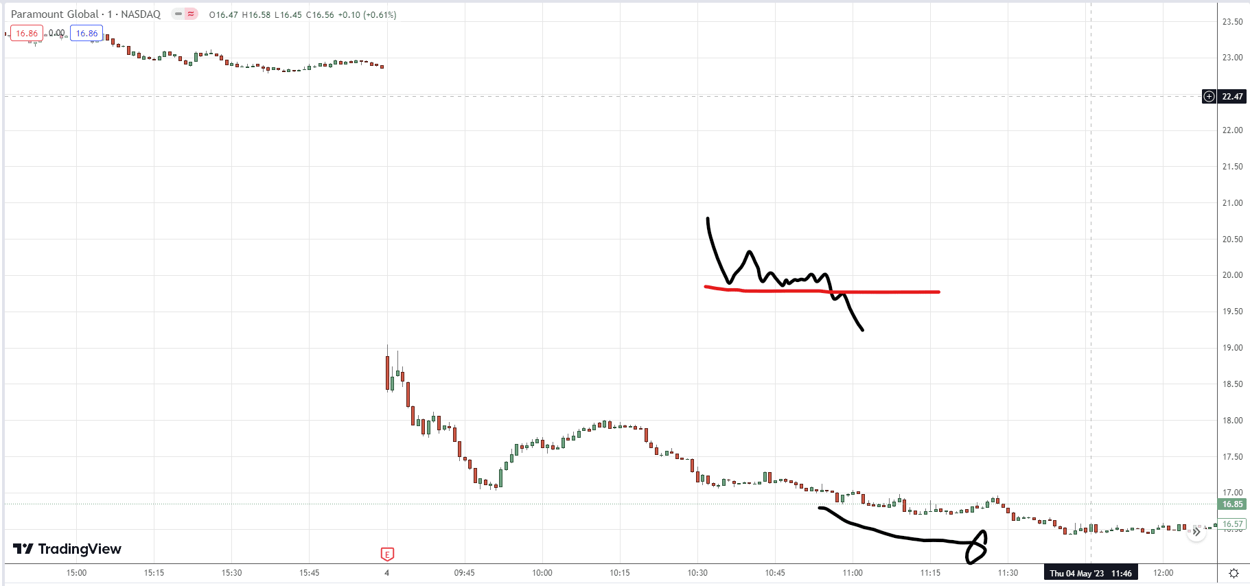 星期四 PARA低開,很多再低走。我是去到10:50 左右才開始留意它。